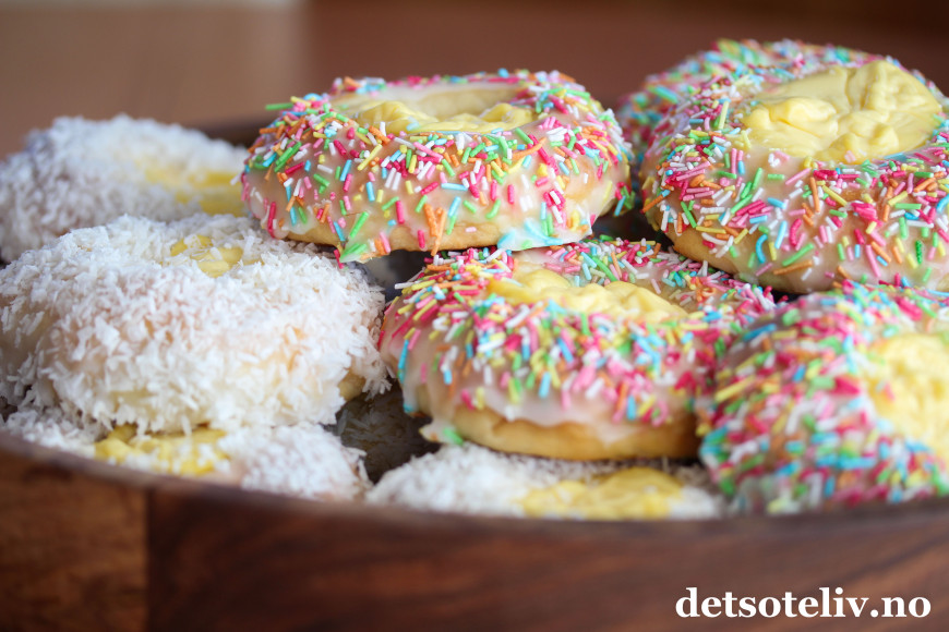 Neste gang du lager Skolebrød, prøv å drysse noen med fargerikt kakestrøssel i stedet for kokos.