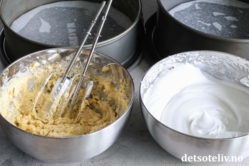 ♥ Har du ikke to kakeformer med samme størrelse, kan du steke en kakebunn av gangen.