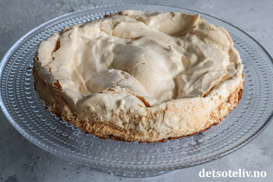 ♥ Merk at det kommer til å bli kun et veldig tynt lag med kakedeig i hver av formene. Bruk en smørekniv og gjør deg litt flid med å prøve å få deigen utover i et tynt og jevnt lag. Det er meningen at deiglaget skal være tynt, og kaken kommer til å bli høy nok med to lag, marengs og fyll. 😊