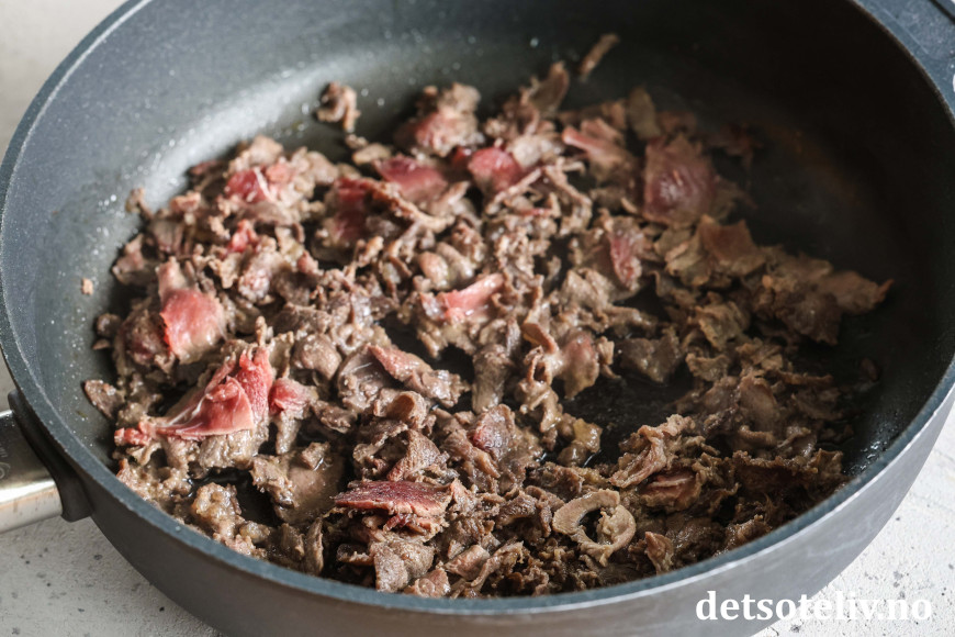 Kok ut pannen med litt vann og ha stekesjyen i gryten.