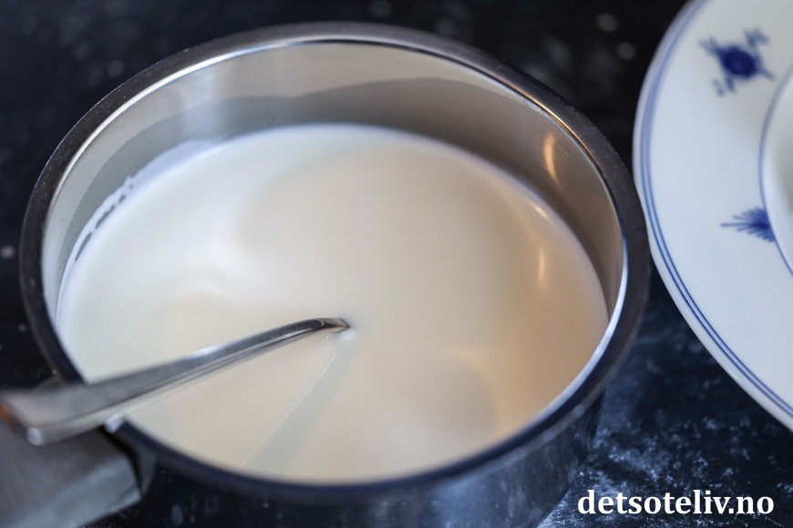 Spis Vinterbollen med skje etter hvert som bollen bløtner av den varme melken.