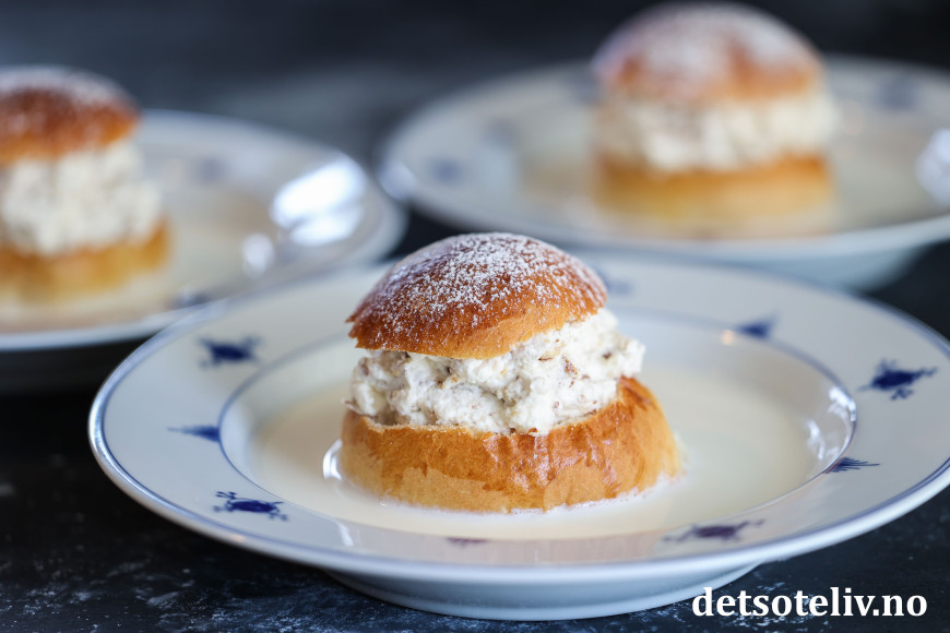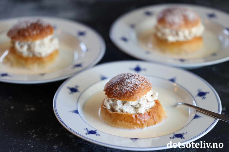 Vinterboller er også veldig gode servert i en dyp tallerken med kokende melk.