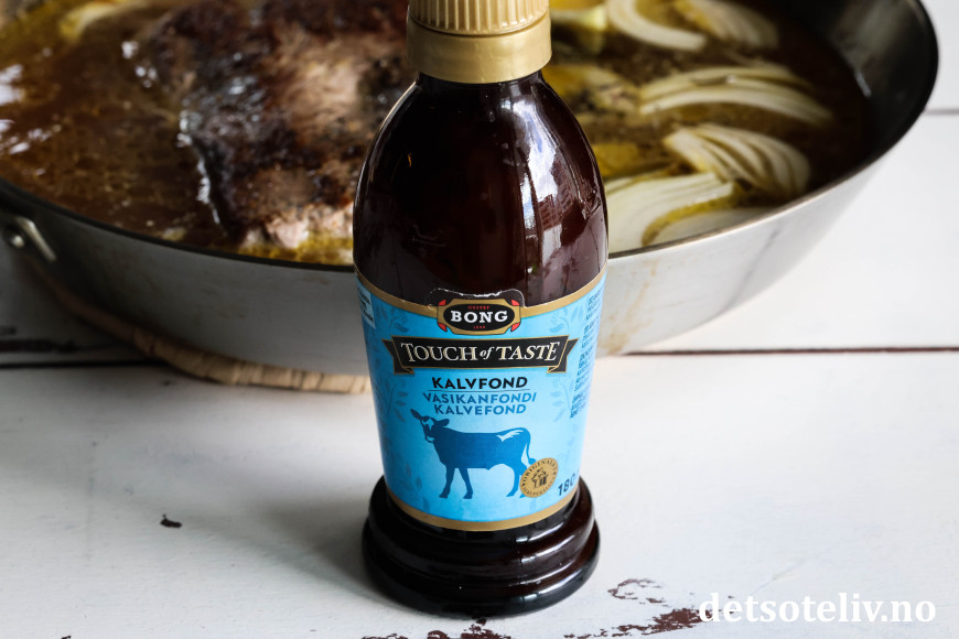♥ Jeg har laget buljong ved å blande kalvefond med vann. Du kan alternativt bruke kjøttfond (1 chef du fond, kjøtt) eller 1 terning kjøttbuljong.