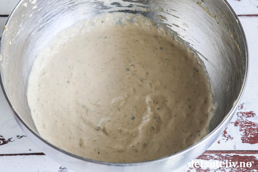 Smak til majonesen med litt salt og eventuelt litt ekstra sitronsaft.