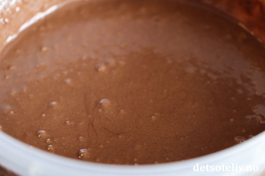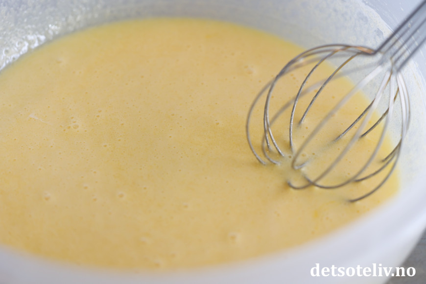 Rør godt slik at deigen blir klumpfri, men ikke lenger enn nødvendig.