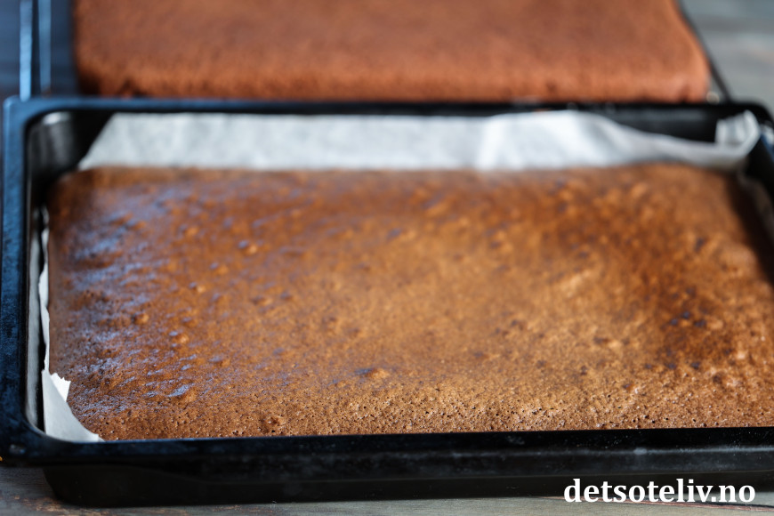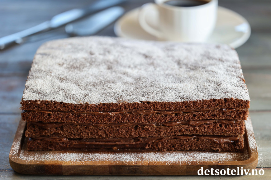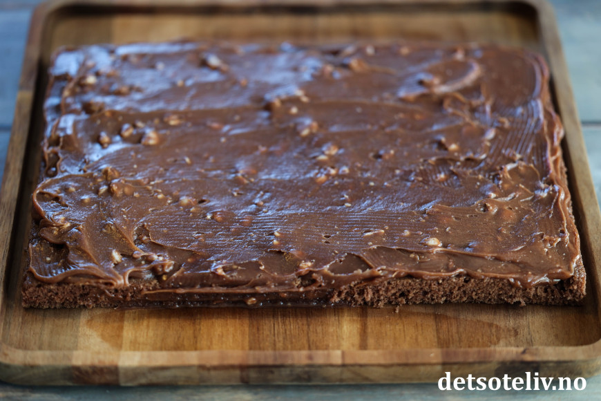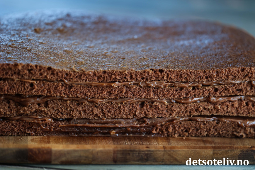 Legg kakebunnene sammen med sjokoladekremen mellom lagene.