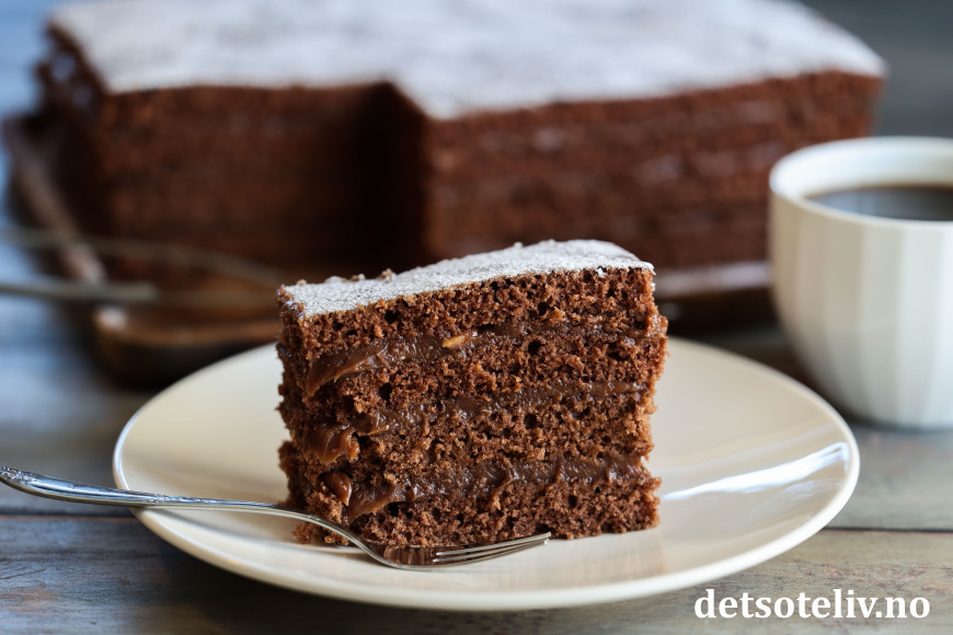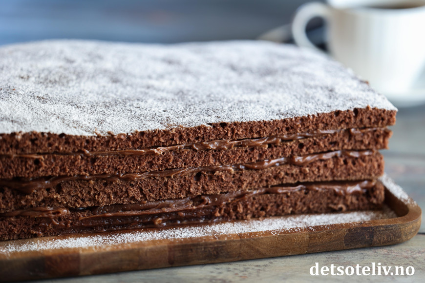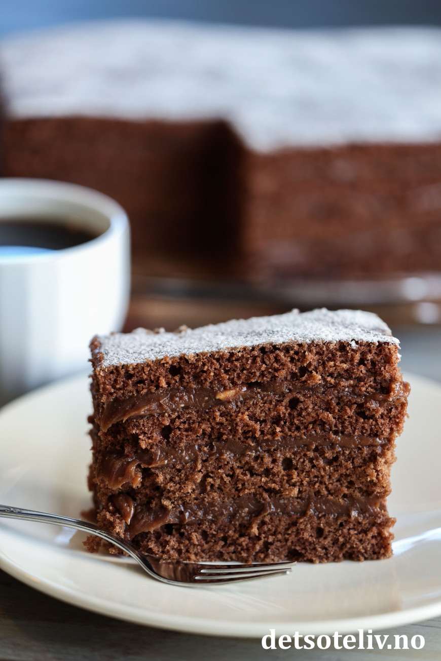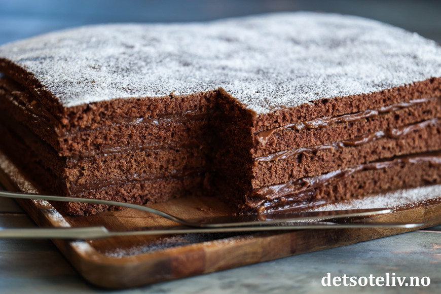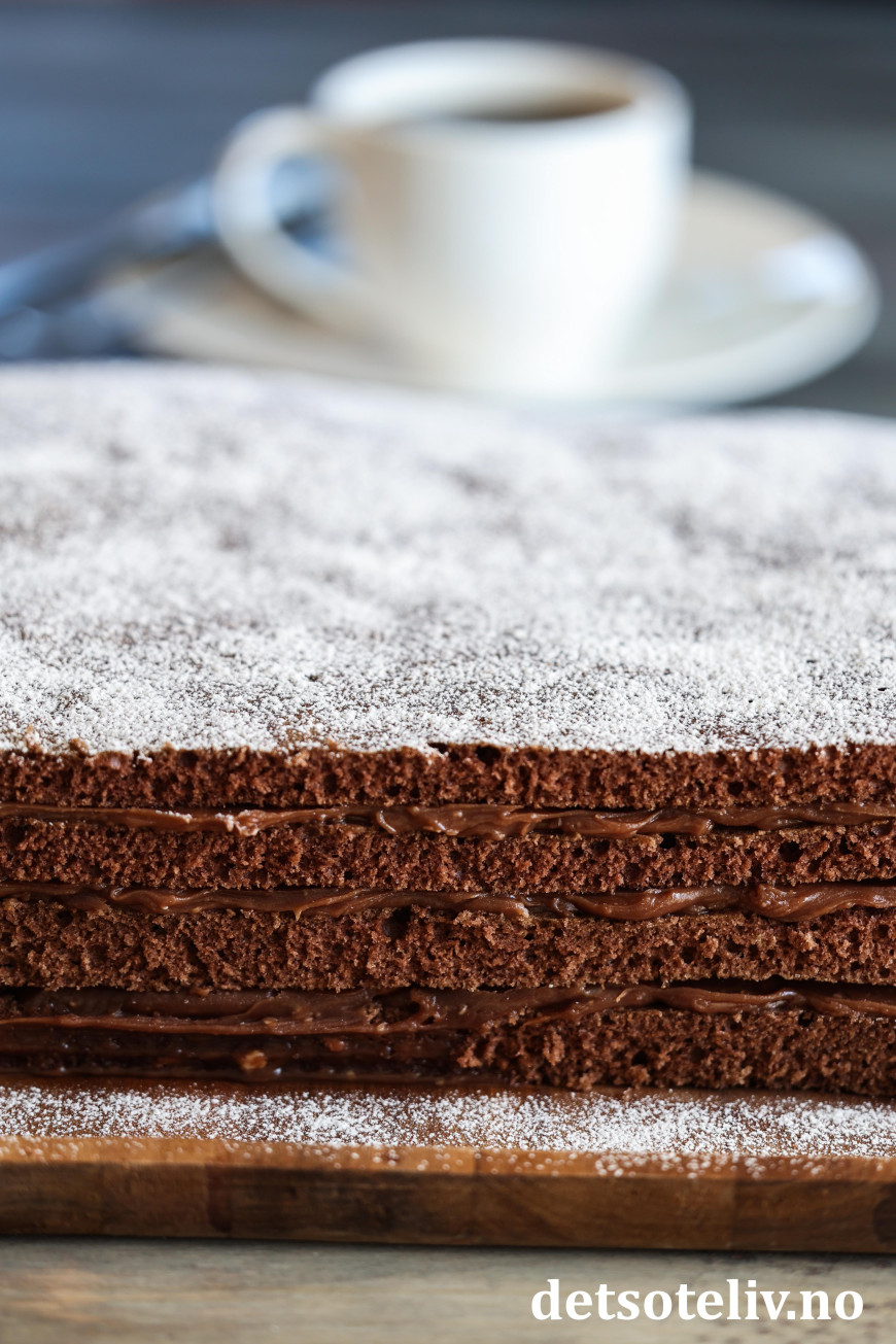 Sjokoladekake med fire lag ser jo veldig flott ut!