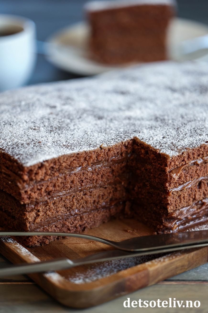 Om man lager den høy, er den vanskelig å dele? Er det derfor oppskriften er flere tynnere lag istedet?