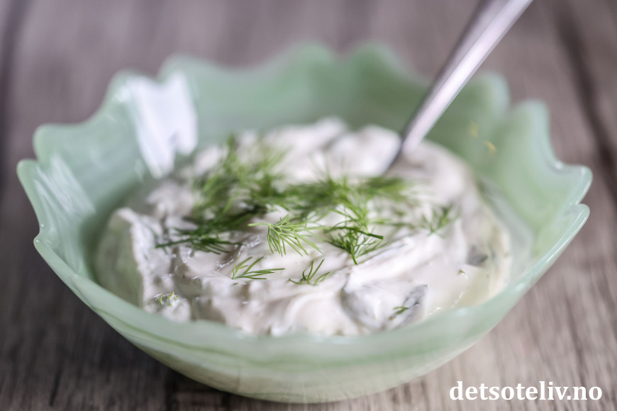 Dette er en nydelig yoghurtsaus, med deilig smak av hvitløk og dill.
